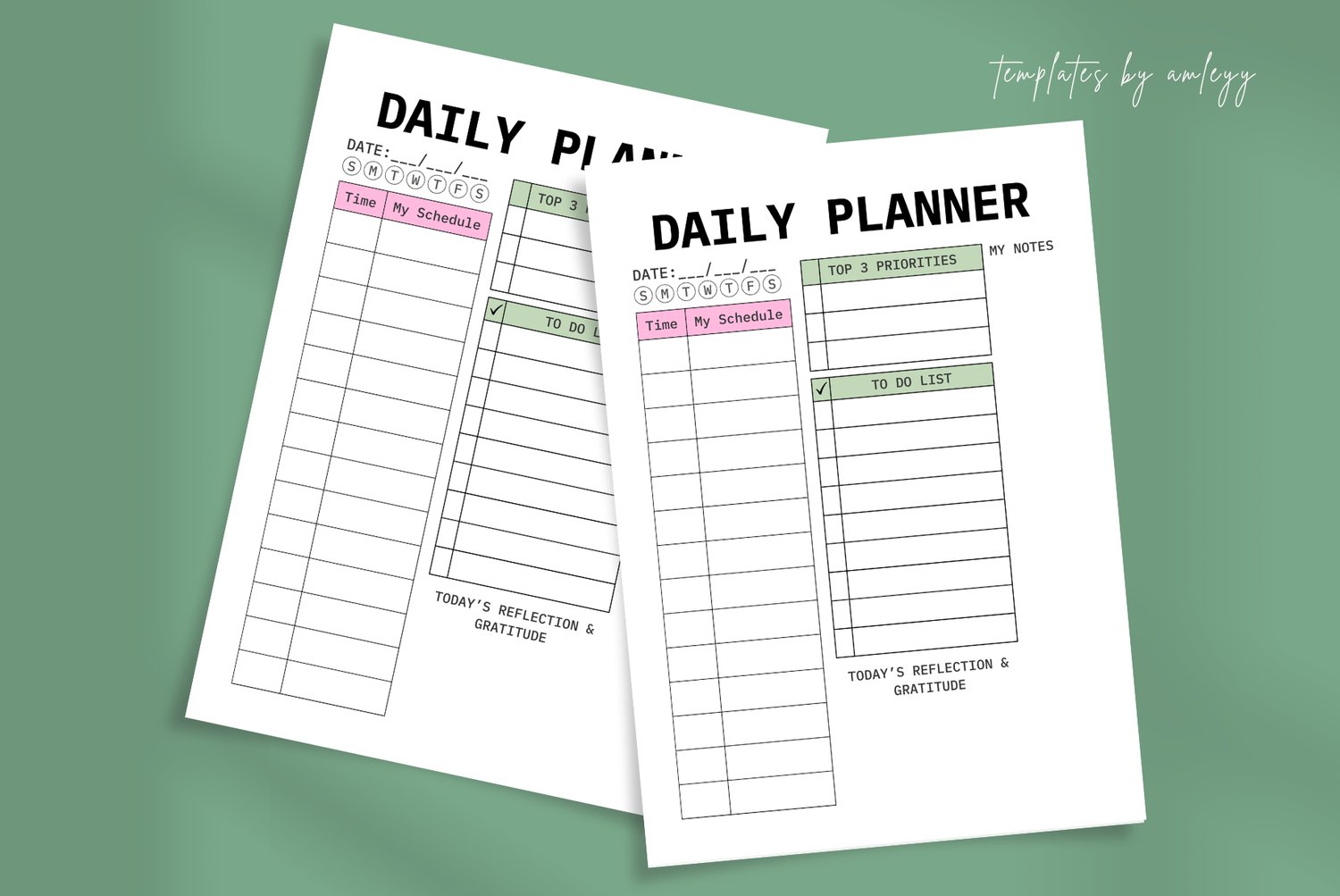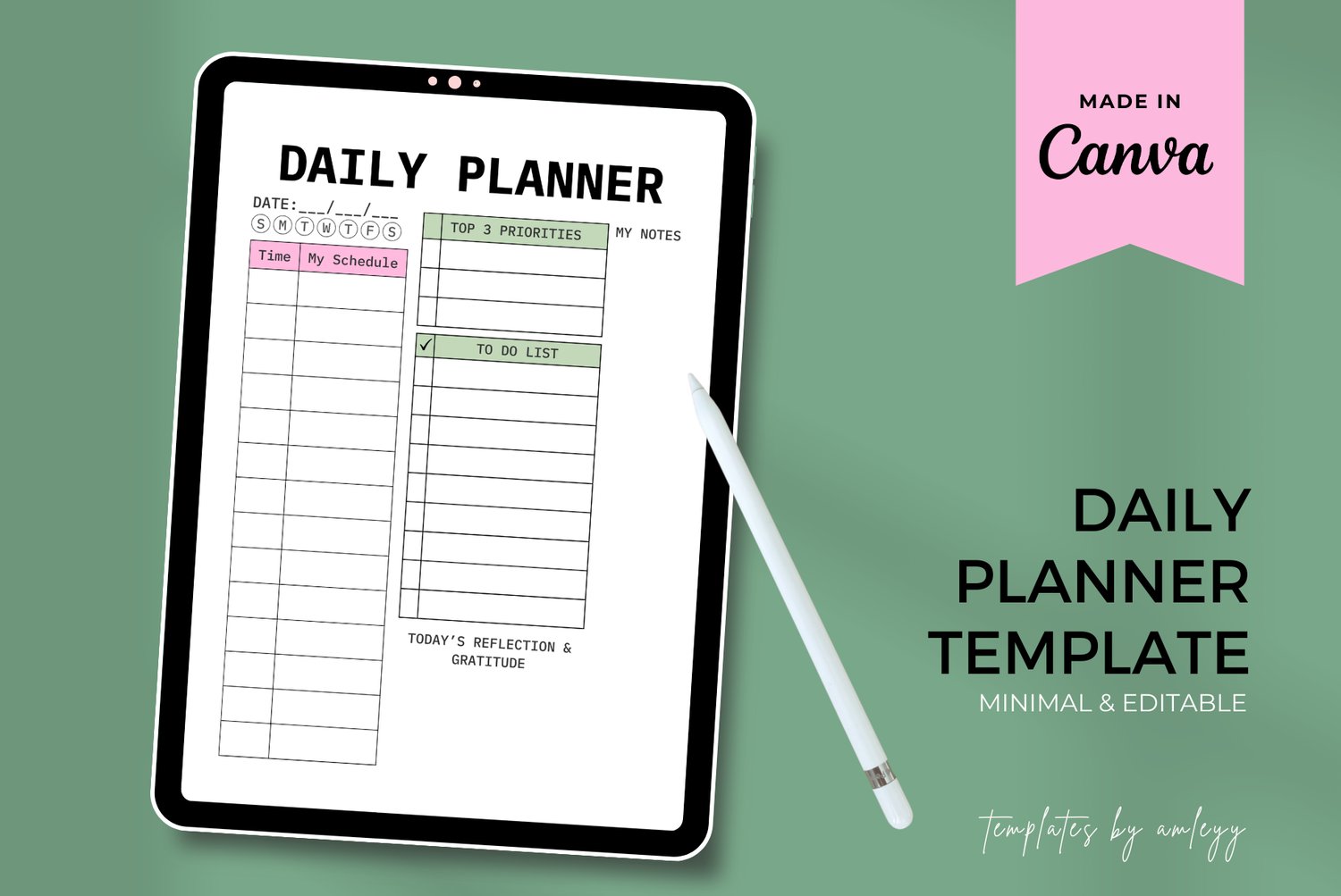 Aesthetic Daily Planner Canva Template - Daily Productivity & Self-Care Page