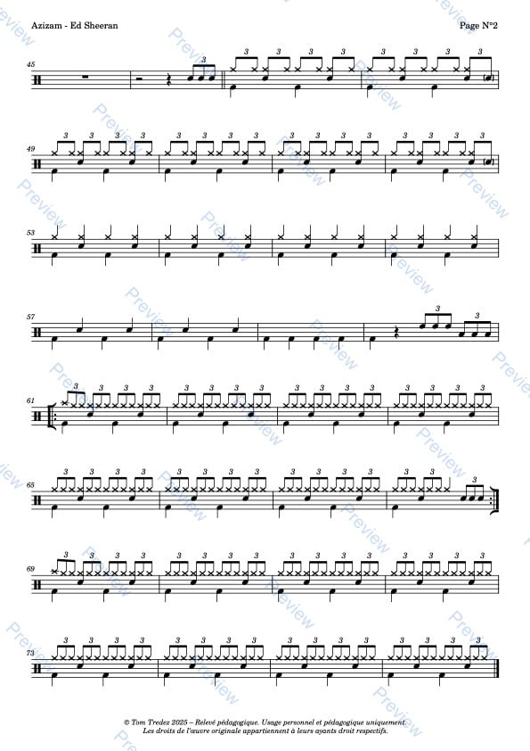 Partition complète de Azizam - Ed Sheeran, réarrangée pour la batterie, reprenant à l'identique la version de l'album.