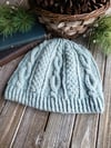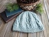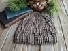 Notes: Hat is worked from the bottom up in the round beginning with a twisted rib brim and finished with easy alternating cable and texture sections. Pattern can be worked from either charted or written instructions.