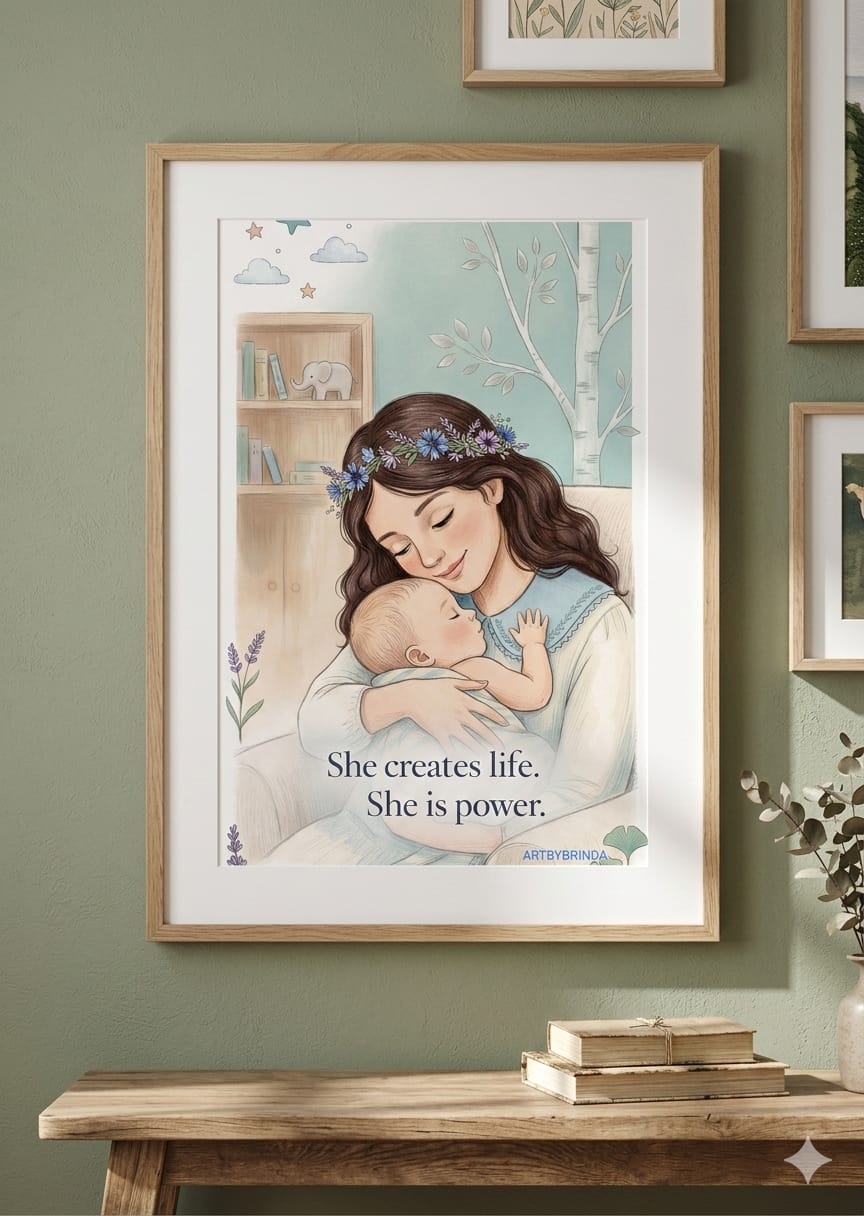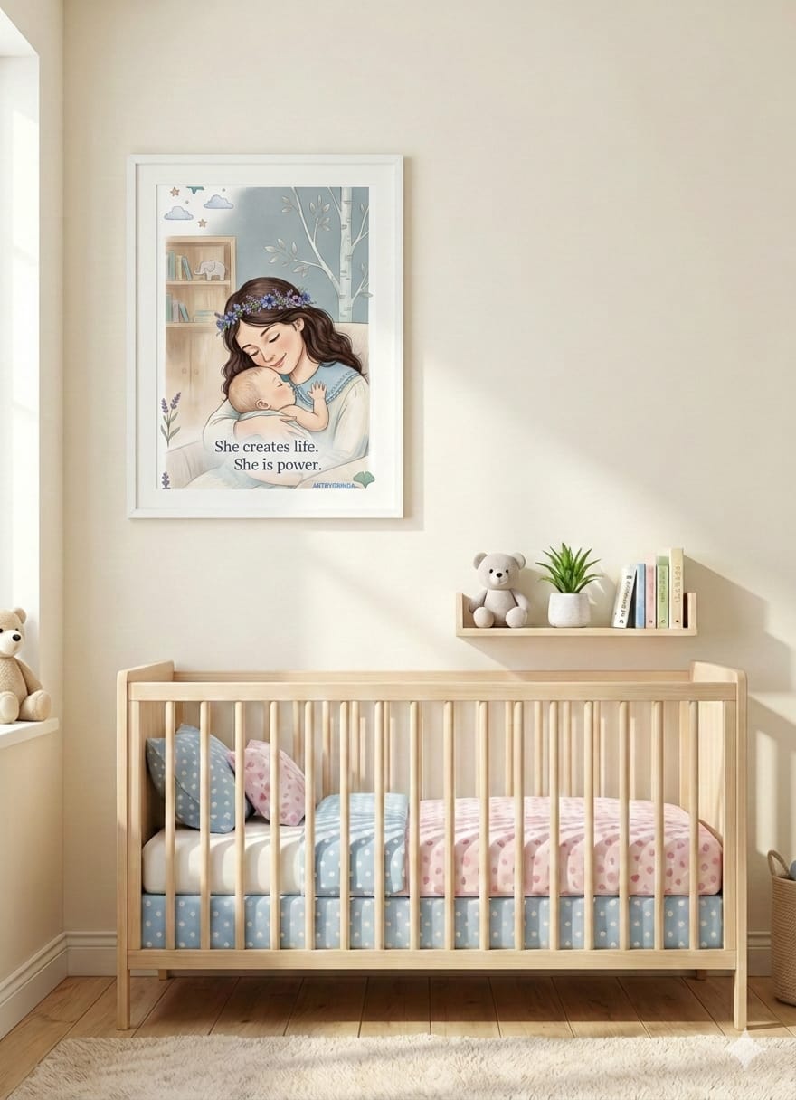 Designed for nursery decor, baby rooms, motherhood gifts, and Women’s Day themed interiors.