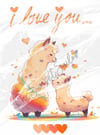 Featuring an adorable illustration of a mother llama and her baby, this 5x7 inch card is sure to capture their heart. The phrase "I love you" is prominently displayed in eye-catching script, making it clear exactly what message you're trying to convey.