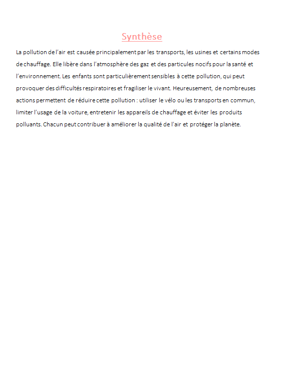 - Une synthÚse pour la trace écrite