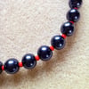 A 10 inch glass bead necklace pawmade by May with 6mm beads and a lobster clasp fastener.