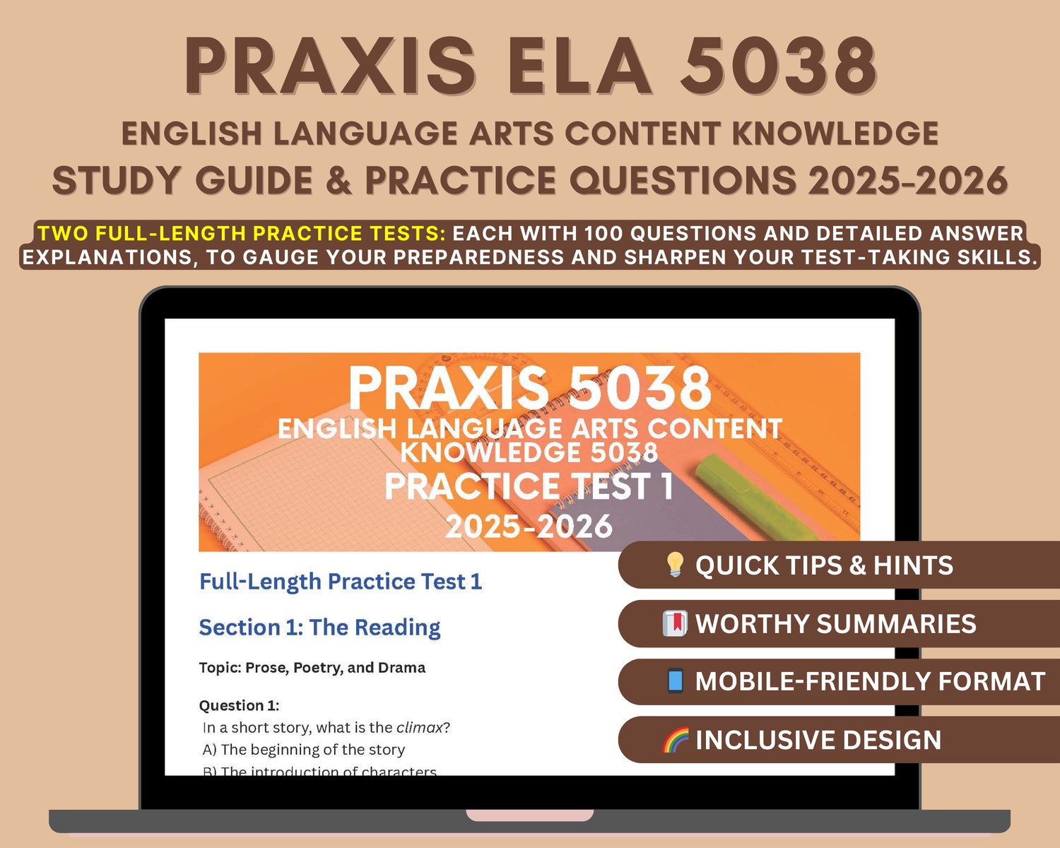 🌟 Praxis English Language Arts Content Knowledge 5038 Study Guide 2025-2026 🌟