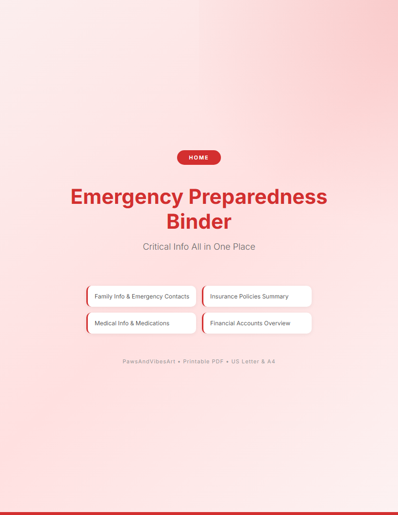 Be prepared for any emergency! This comprehensive binder keeps all your critical information organized and accessible in one place.
