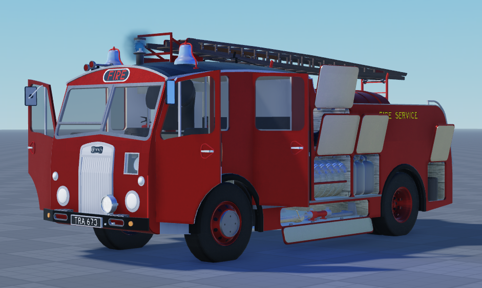 This is a 1960s Dennis F15 Water Tender, Comes with standard norms EV ELS and A-chassis tuning, Detailed cab interior and lockers, Working Sirens.