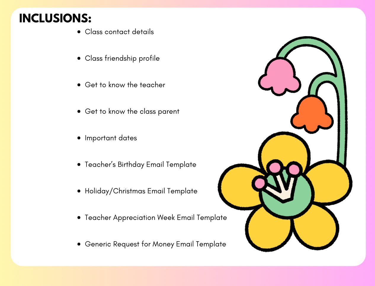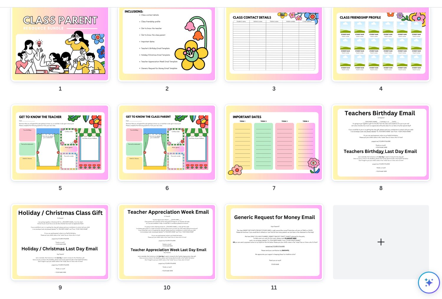 The "Class Parent Resource Bundle" is a comprehensive collection of materials and resources designed to support parents and guardians in their involvement in their child's education. This document contains a wealth of information and guidance about how parents can best support their child's academic and social development, including tips for effective communication with teachers, strategies for helping with homework, and suggestions for creating a positive learning environment at home. Additionally, the "Class Parent Resource Bundle" includes a range of printable materials such as checklists, activity ideas, and templates for parent-teacher conferences. It is an invaluable tool for any parent or guardian looking to play an active role in their child's education.