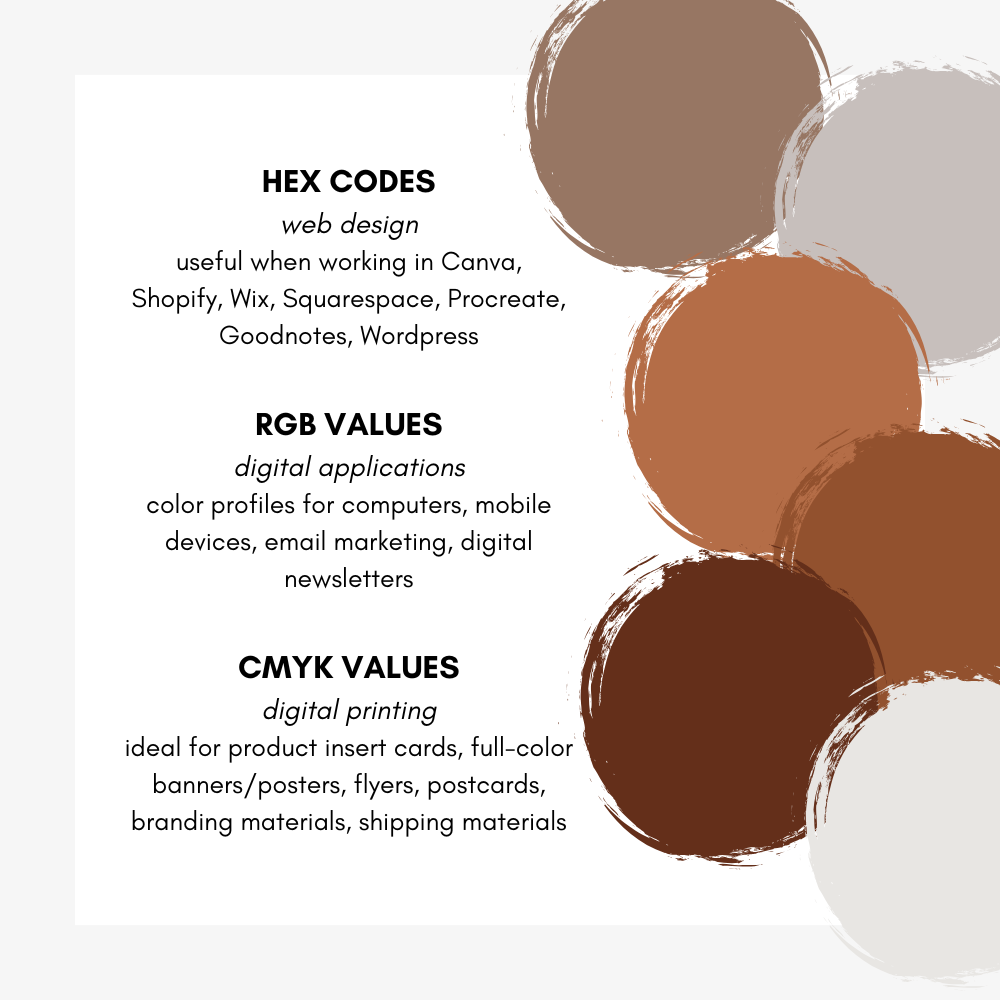+ Detailed Hex Codes, RGB, and CMYK values for each color