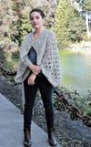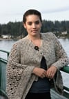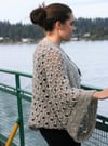 Inspired by the Japanese art of folding paper, this cardi is easy to construct and even easier to wear. Sturdy pure wool yarn achieves excellent drape from using a slightly larger hook than the manufacturer recommends and aggressive blocking. This piece is one part fashion statement, one part warmth, and all just plain good.