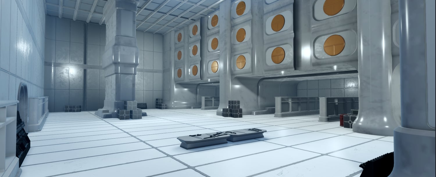 - Detailed armory with weapon assets, lockers, and gun rack models