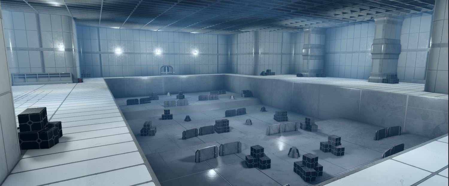 - Training & combat simulation arena equipped with intricate obstacles, props, and interactive elements