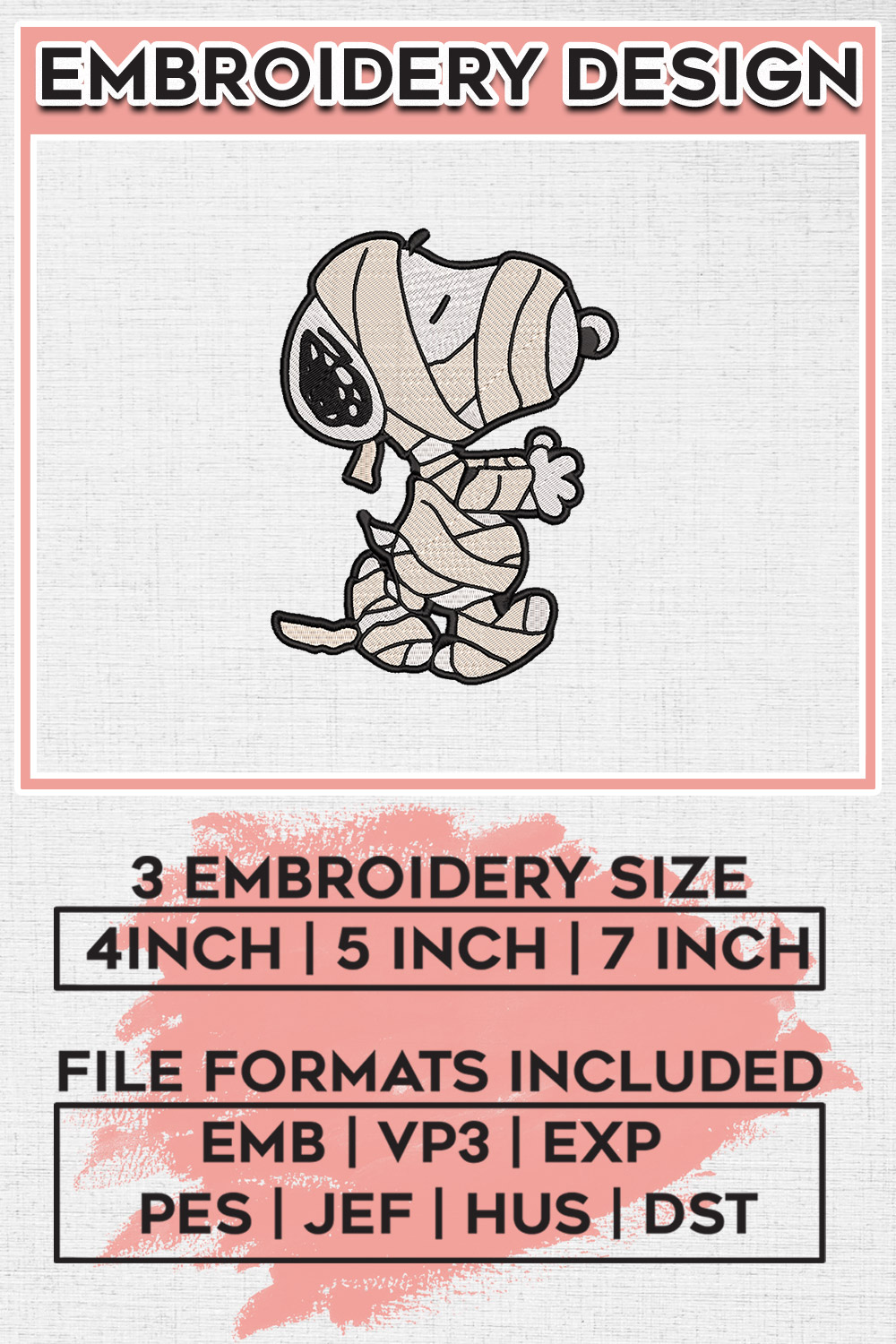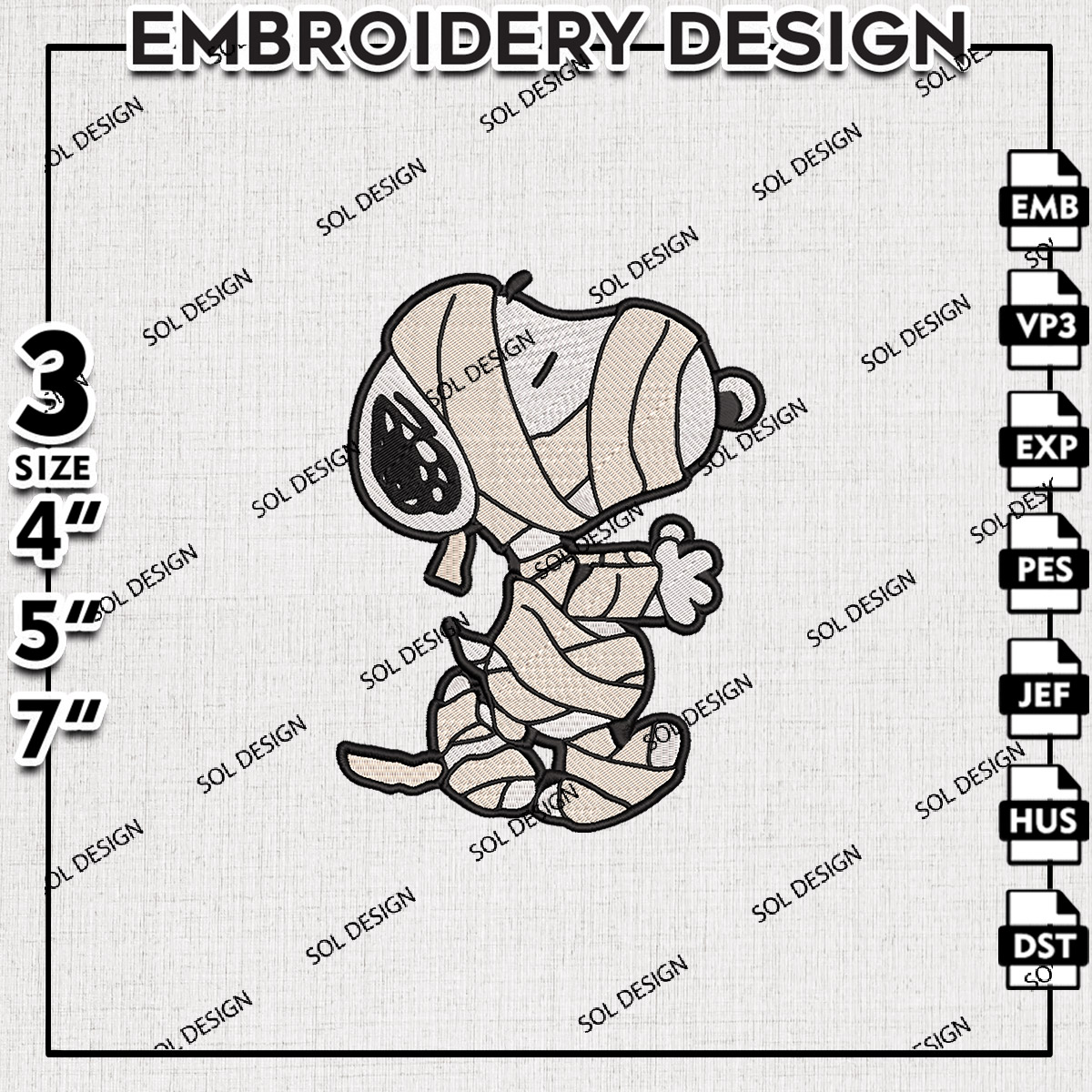 Mummy Snoopy Embroidery Designs, Halloween Embroidery Files, Spooky Season Embroidery, Cute Halloween Machine Embroidery Design, Digital Download