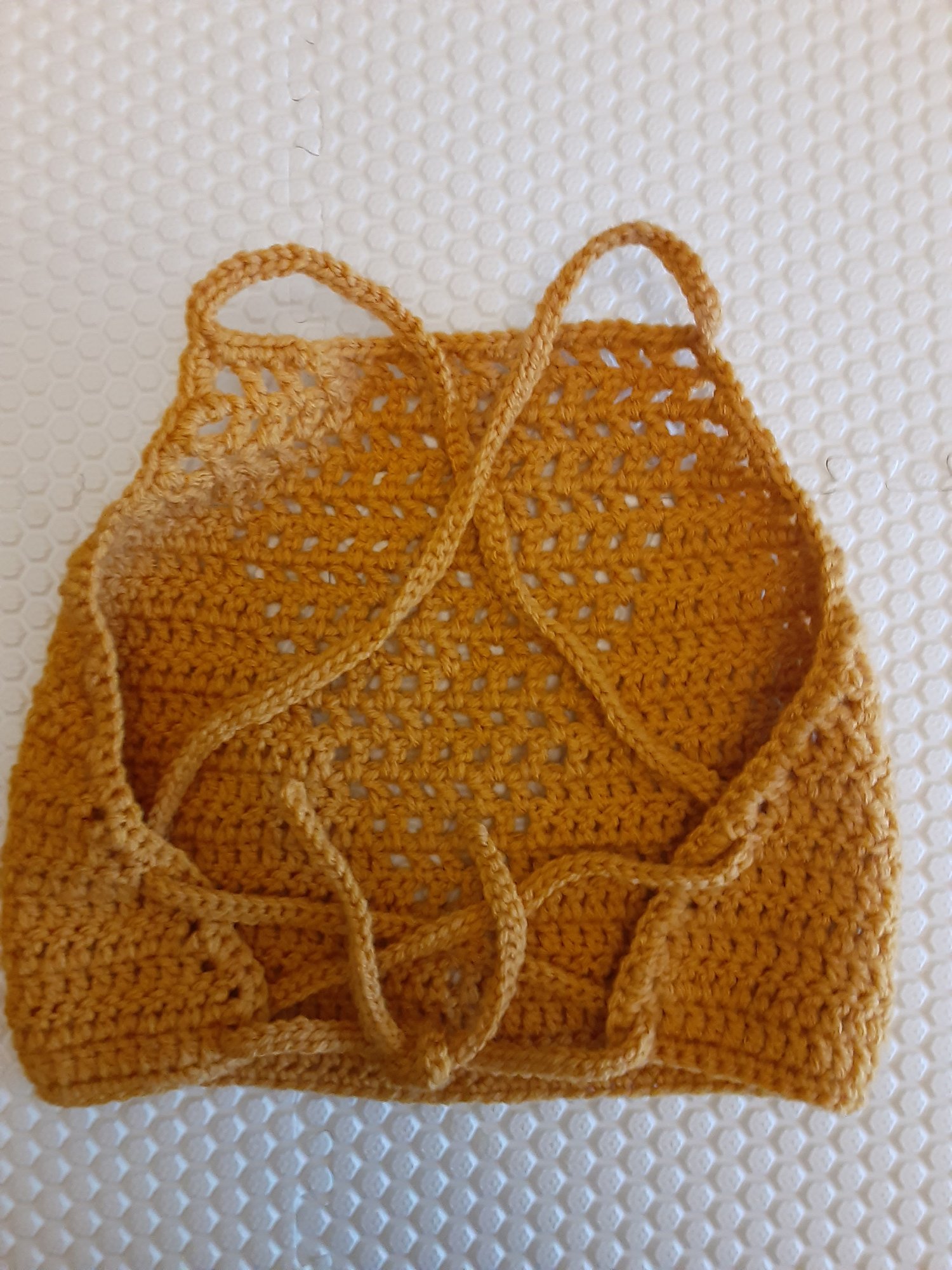 The Valerie Top is a modern, stylish crochet piece featuring a striking V-outline mesh design and adjustable straps for a personalized fit. Each top is handmade to order, making it a truly unique addition to your wardrobe.