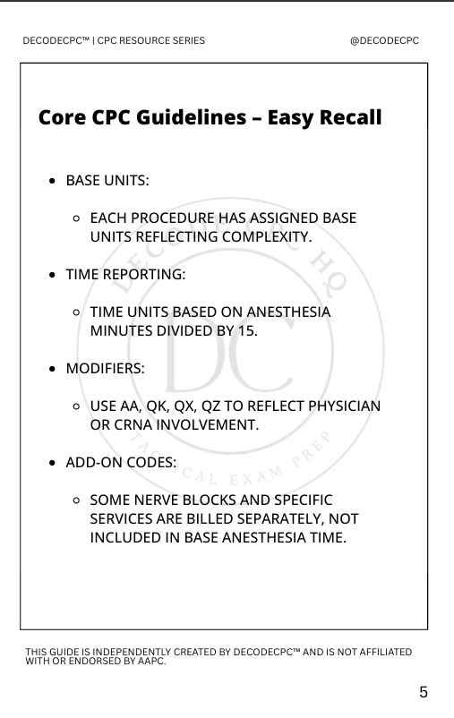 Master the unique formula of Anesthesia coding. This guide breaks down Base Units, Time Reporting, Physical Status Modifiers (P1-P6), and Qualifying Circumstances. Includes critical notes on medical direction (QK, QY) vs. personal performance (AA).