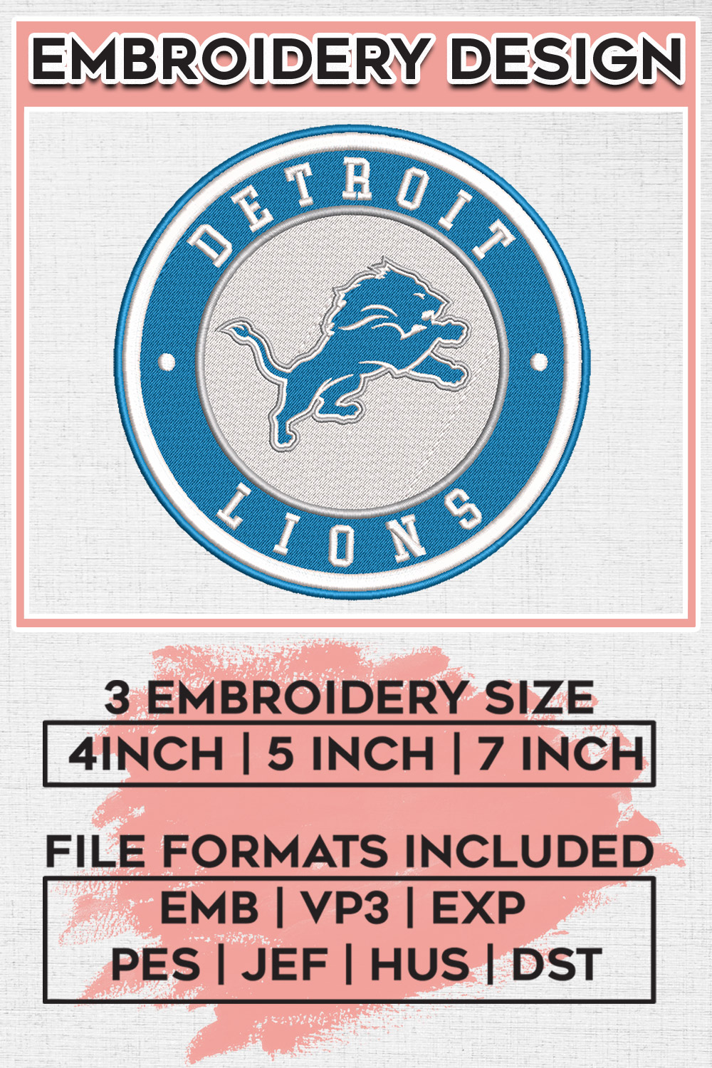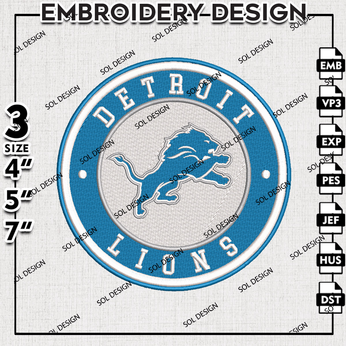 NFL Detroit Lions Circle Logo Embroidery Design Files, NFL Lions, NFL Embroidery Designs, NFL Detroit Lions Machine Embroidery Design, Digital Download