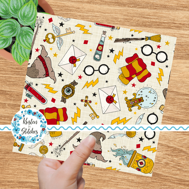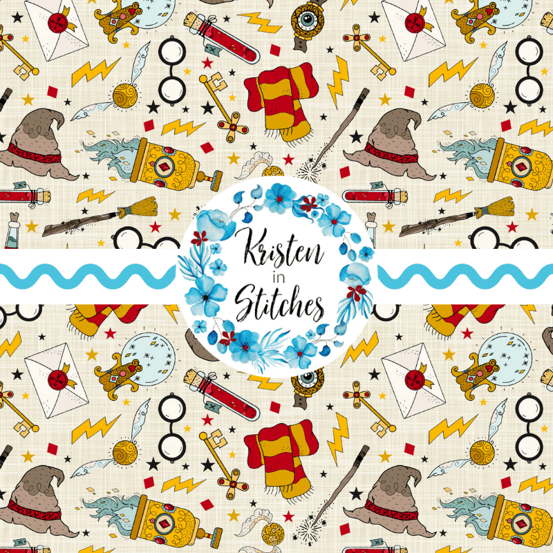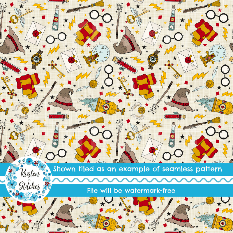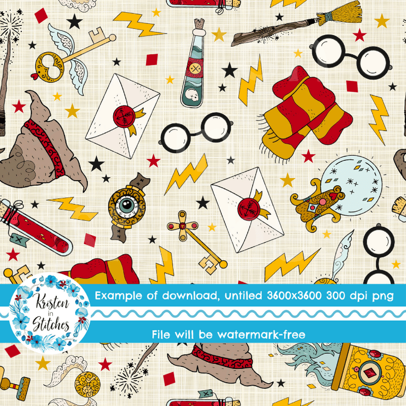 Wizard world icons including hats, letters, glasses, scarves and potions.