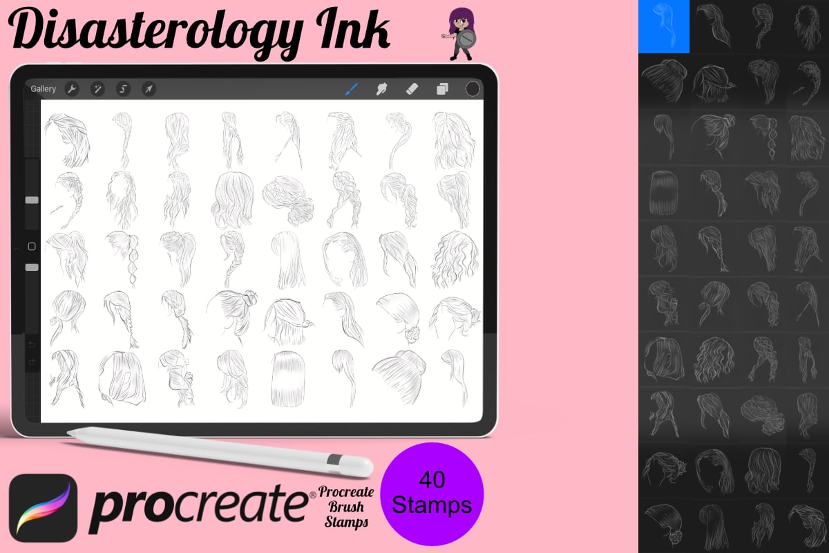 Pack of 40 Women's Hair Procreate Stamp Brushes! These hair stamps are perfect for making illustration projects or any procreate purpose. You can use these in any colour or opacity and they can be resized to best fit your art. You need Procreate 5.0.8 or 5X, an iPad, and an Apple Pencil. Also, these stamp brushes are not pressure sensitive and can be used with third party stylus, Apple Pencil or even your finger. You can change the colour, size and opacity of these stamps.