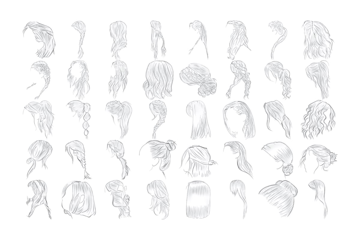 Womens Hair Fashion Set 4 Procreate Brush Stamps, 40 Hair Stamps