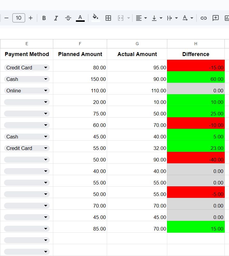 Planned vs Actual spending