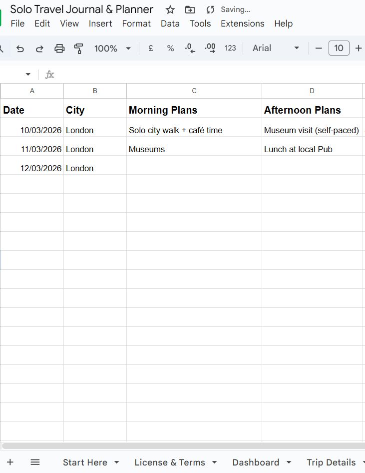 Designed for independent travelers who want clarity, organization, and meaningful memories — all in one easy-to-use Google Sheets template.