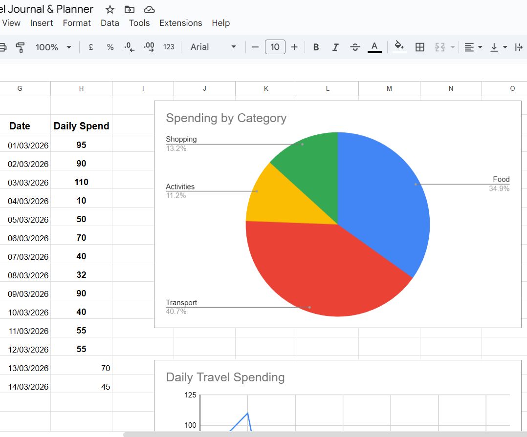 Categories: Accommodation, Food, Transport, Activities, Shopping, Self-care