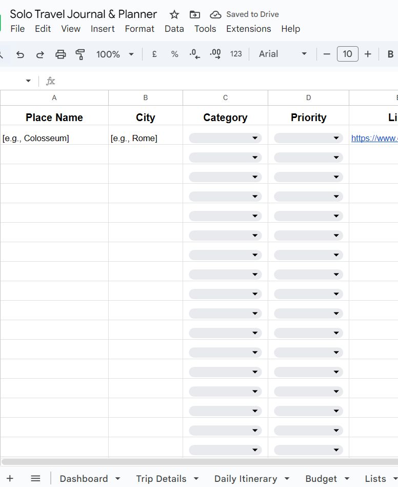 Track solo-friendly places with priority, links & notes
