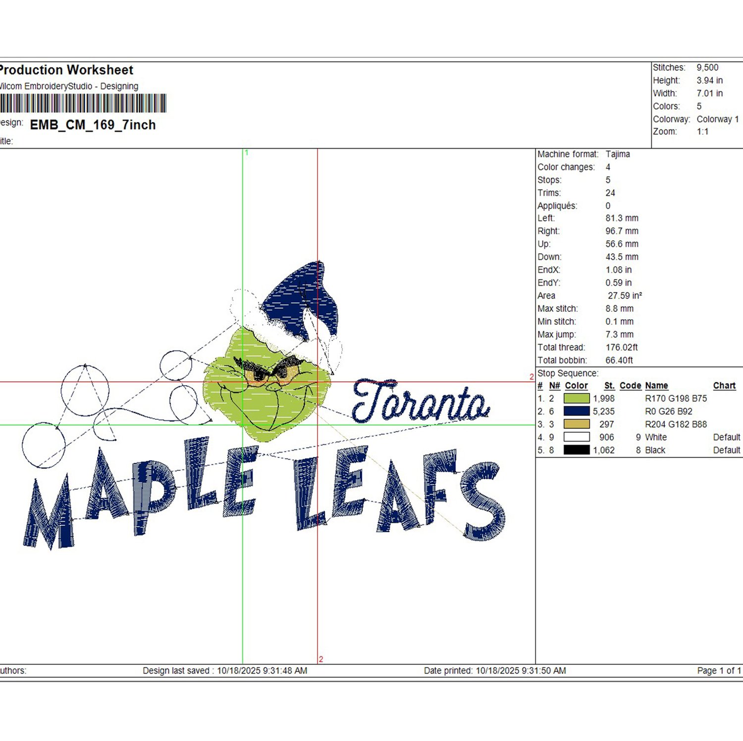 #ChristmasGrinch #TorontoMapleLeafs #NHLEmbroidery #GrinchEmbroidery #MapleLeafsLogo #HockeyEmbroidery #MerryChristmasDesign #MachineEmbroidery #DigitalDownload #EmbroideryFiles