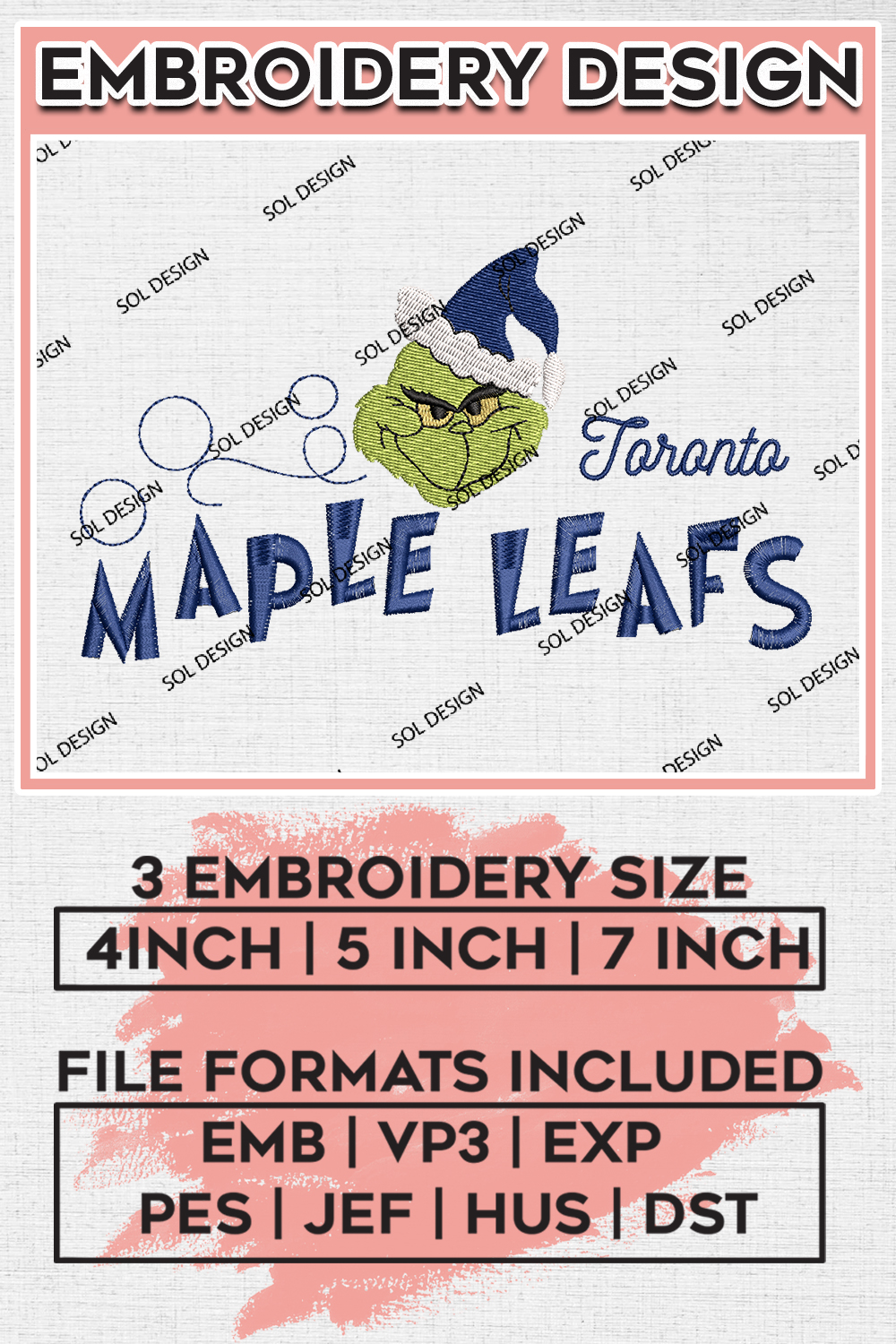 Christmas Grinch x Toronto Maple Leafs NHL Team Embroidery Designs, Grinch Embroidery Files, NHL Maple Leafs Hockey Team Logo Embroidery, Merry Christmas Machine Embroidery Design, Digital Download