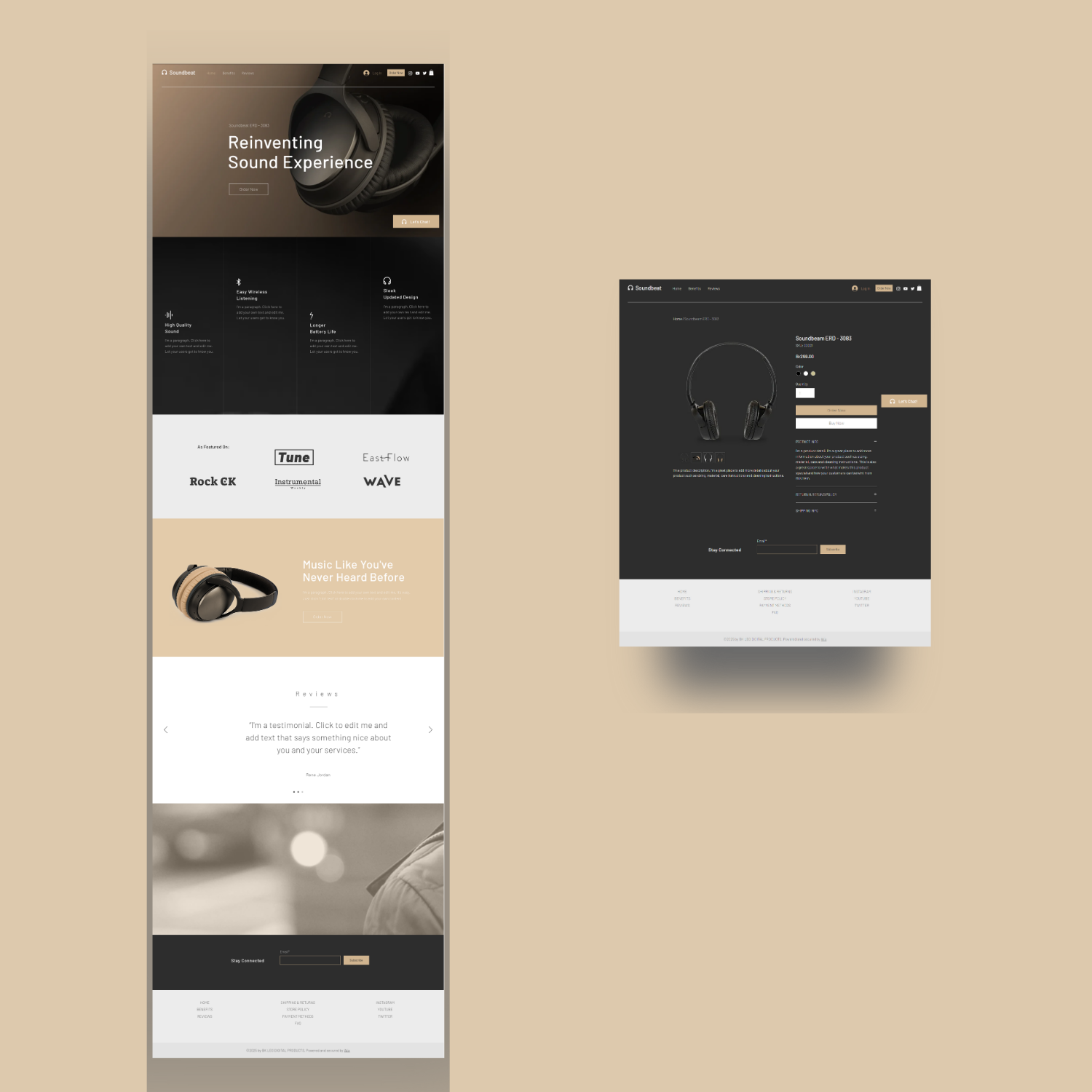 4. Shopping Pages: Showcase your products and offer detailed information about your products. Whether it's single or multiple products, the "SOUNDBEAT PRODUCT E-COMMERCE WIX Website" template allows you to present your products offerings in a visually stunning and organized manner.
