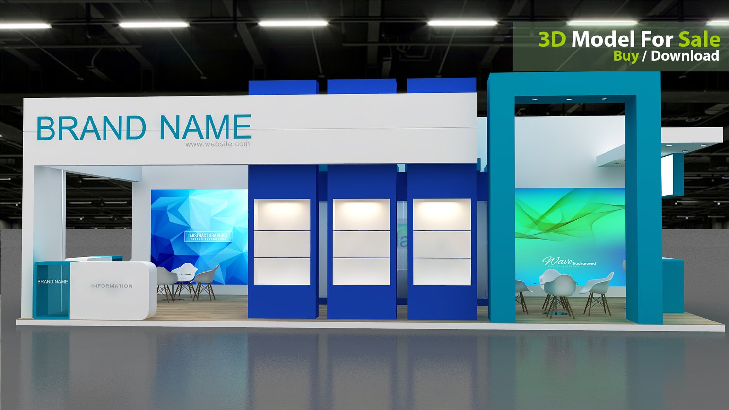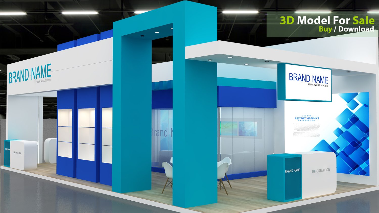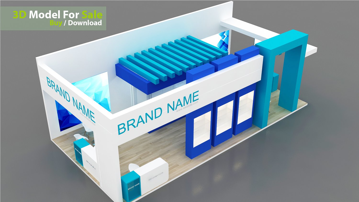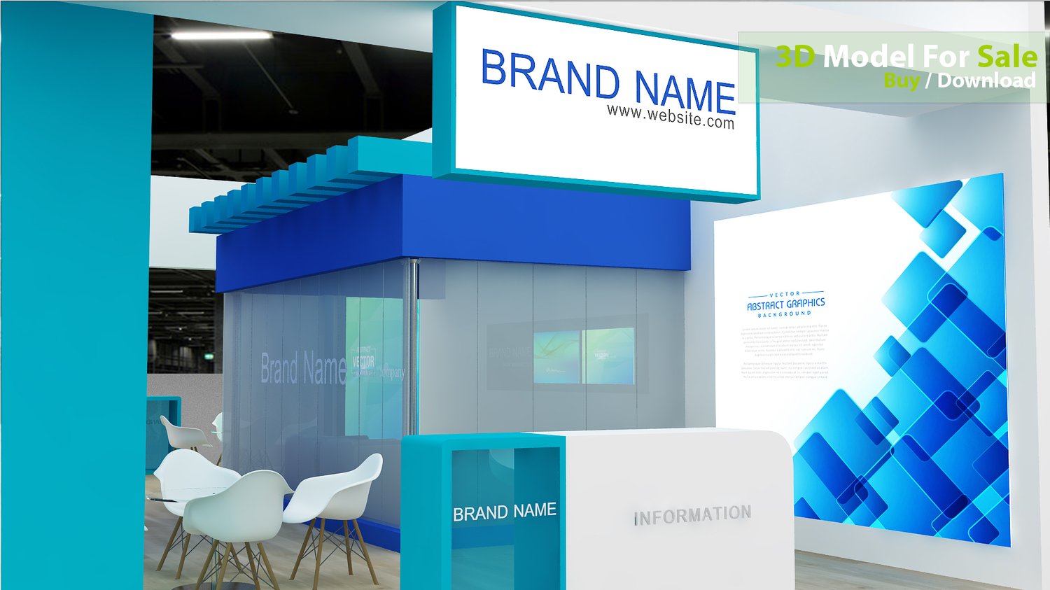 This professional 3D booth model is designed for exhibitions, trade shows, expos, fairs, and event displays.