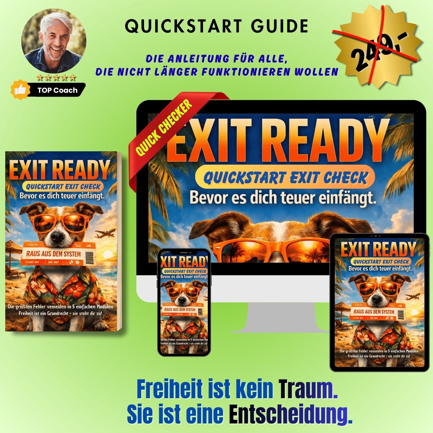 „Kein Blabla, nur Klarheit. Der Exit-Check hat mir in zwei Tagen mehr gebracht als Monate YouTube – jetzt weiß ich, wo ich stehe und was mein nächster Schritt ist.“
