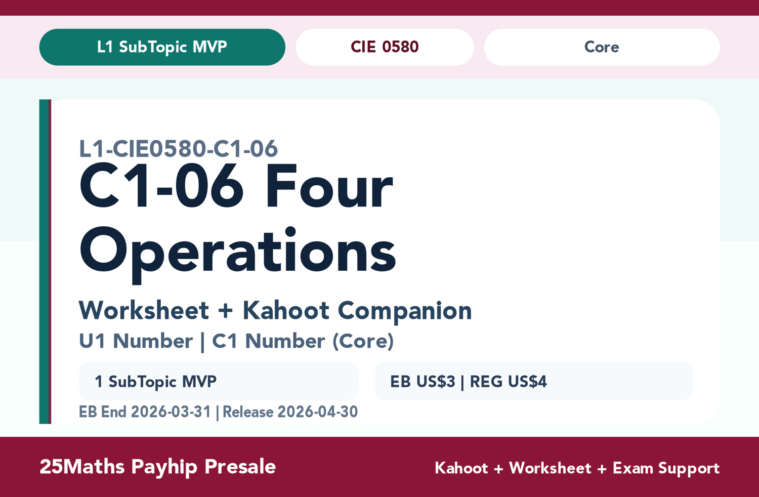 CIE 0580 C1-06 The four operations (Pre-Sale)