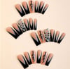 Add a bold twist to a classic French tip with these sleek black nails, featuring a stunning snake design for a touch of edge and elegance. Perfect for any occasion, these press-on nails offer a chic, durable, and easy-to-apply solution to elevate your look in minutes. Whether you’re going out or just want to add a little glam, these nails are the perfect accessory.