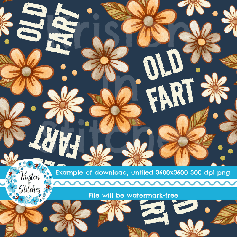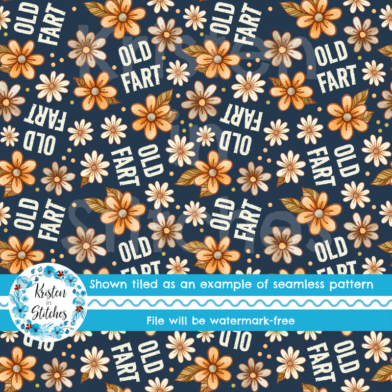 Old Fart Sarcastic Floral Seamless Pattern, Navy