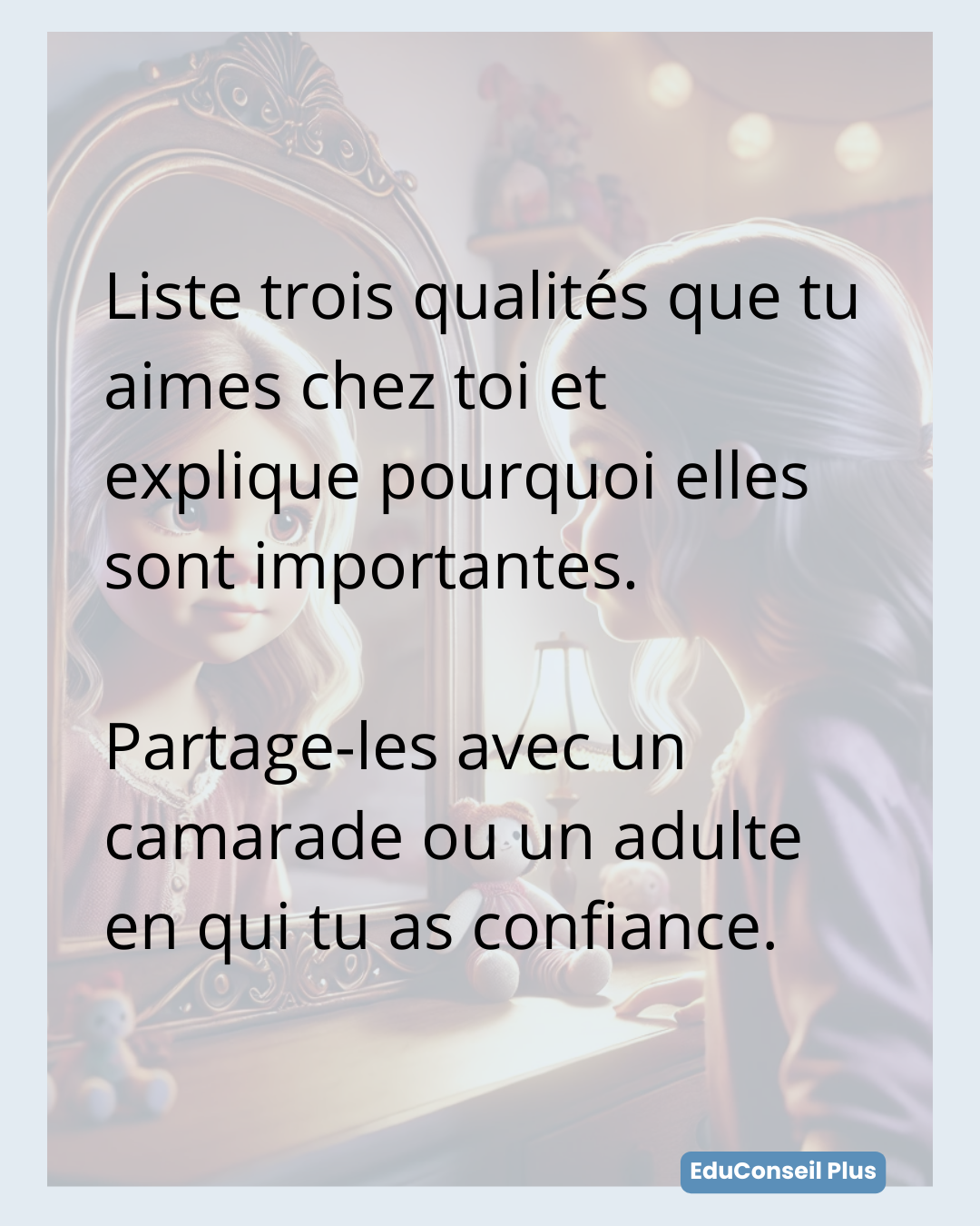 - Confiance en soi : identifier ses forces, célébrer ses réussites.