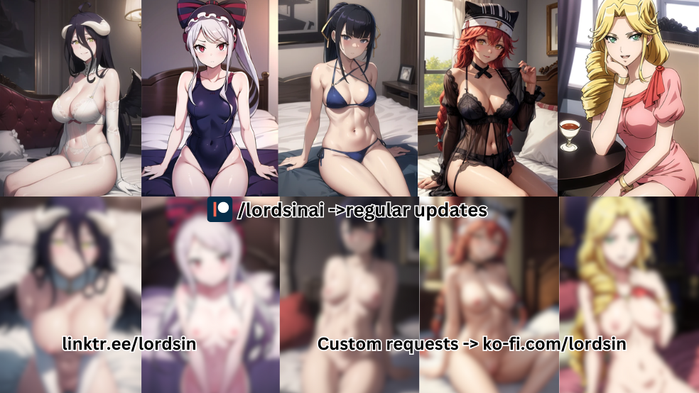 5 SFWs and 5 NSFWs of 5 characters (albedo, shaltear, naberal gamma, lakyus, lupisregina beta) from Overlord