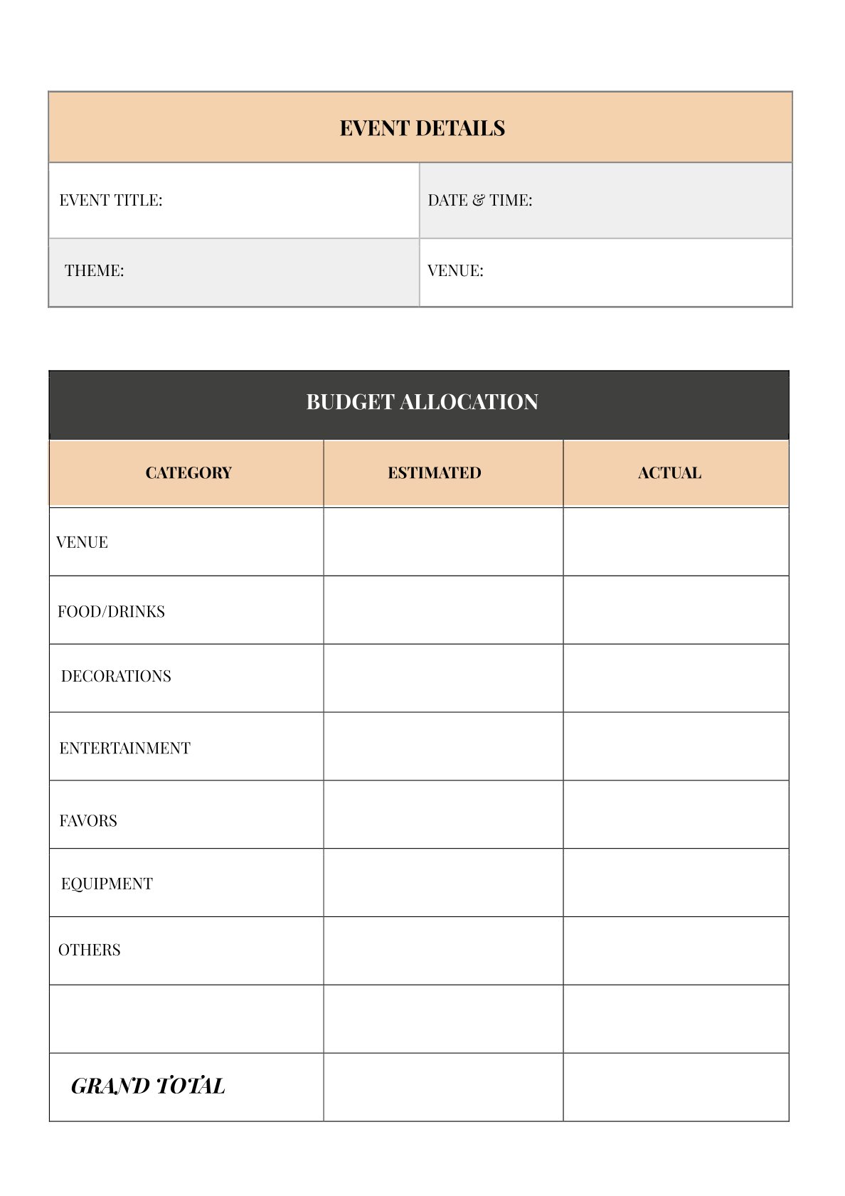 gift event planner printable, budget allocation for events, guest list rsvp tracker pdf, menu planning appetizers mains desserts, event program outline timeline, to do and to buy lists, decorations equipment task assignments, music playlist template, A4 letter event planner, instant download celebration planner