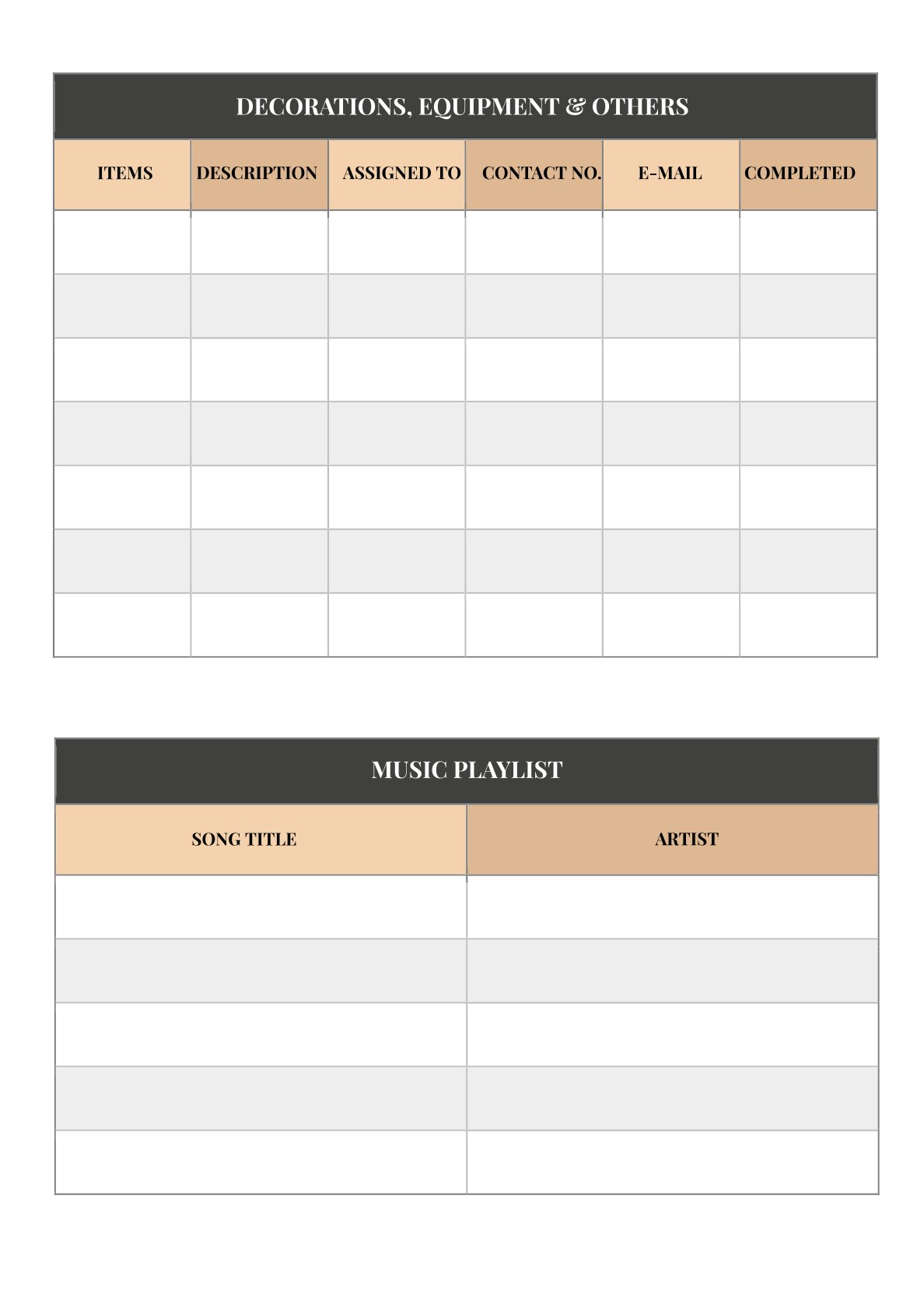 gift event planner, party planner printable, event budget tracker, guest list and rsvp, menu planner pdf, program timeline, decorations and equipment list, music playlist sheet, celebration planner, instant download pdf