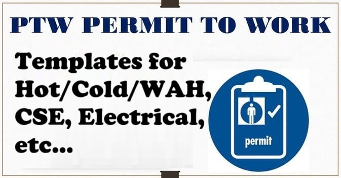 Permit to Work - PTW Templates for multiple activities like Cold Work, Hot Work, Confined Space Entry, Lifting Operation, Electrical (Isolation) Permit, Work at Height, Excavation Activities