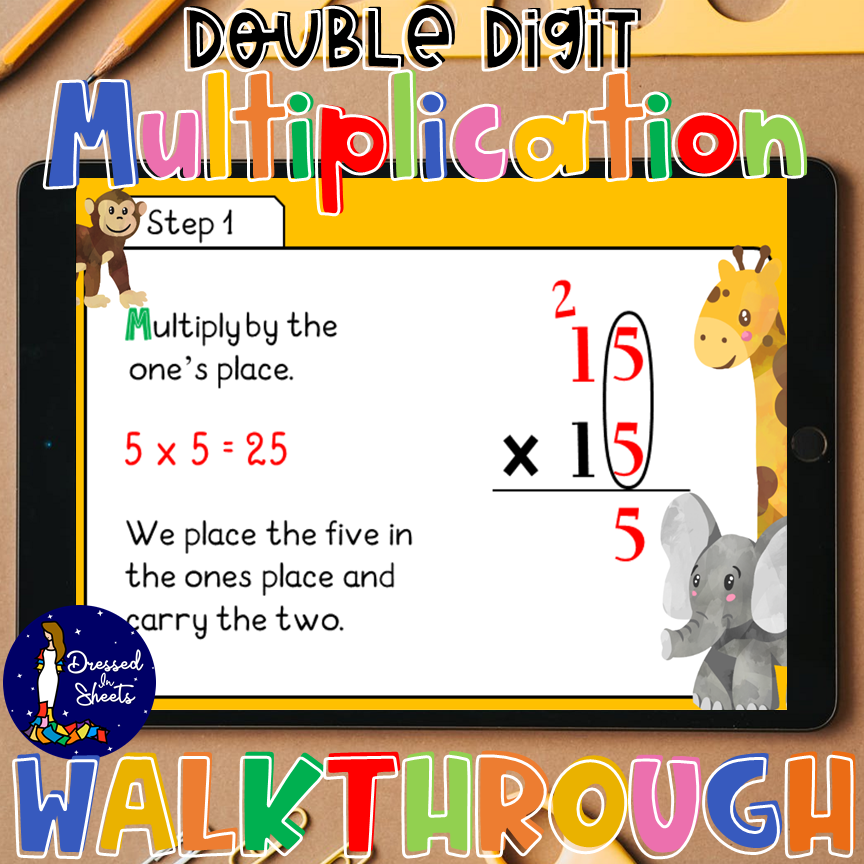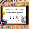 This BOOM deck shows students step-by-step instructions on how to do double digit multiplication. It will also help students know key terms in multiplication. They will use the acronym MZMA (Many Zoos…Many Animals) to remember the steps to perform double digit multiplication. Includes two questions review key terms. There are no multiplication problems in this BOOM deck.