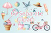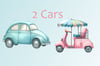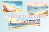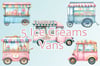 Pastel Seaside Beach Huts, Camper Vans, Ice Cream Vans, etc..
