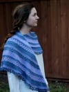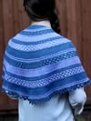Lincette is a half-circle/crescent shaped shawl worked up in stripes of smokey blue and lavender. The sumptuously soft Stitch Sprouts Yellowstone is next to the skin soft, and offers generous yardage for a shawl big enough to wrap up in. Stripes of slip-stitch and eyelet lace combine with stockinette for an easy to work shawl that looks beautiful and intricate. Lincette is offered in written instructions only.