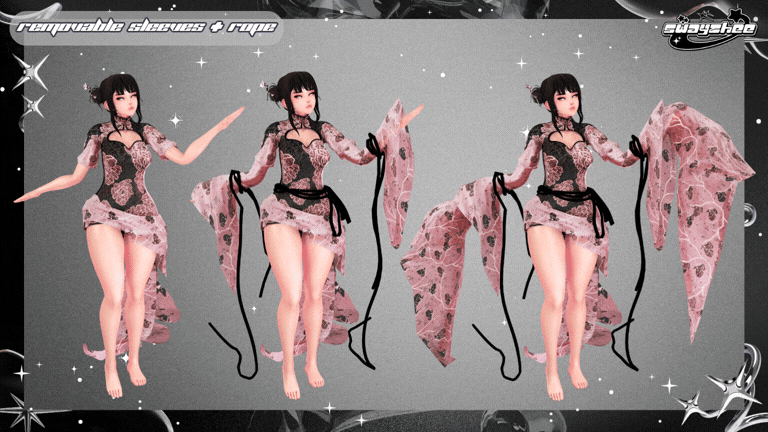 - FBX is separated by main dress, middle sleeves, end sleeves and rope to mix and match :)