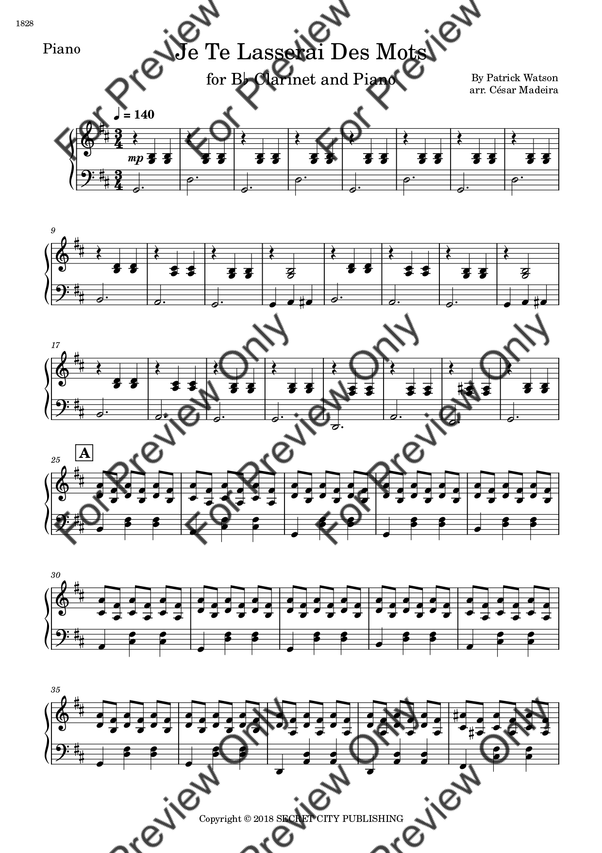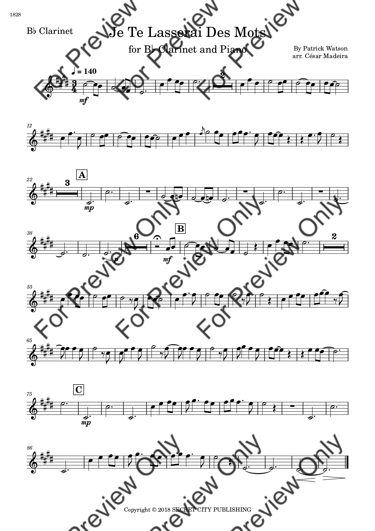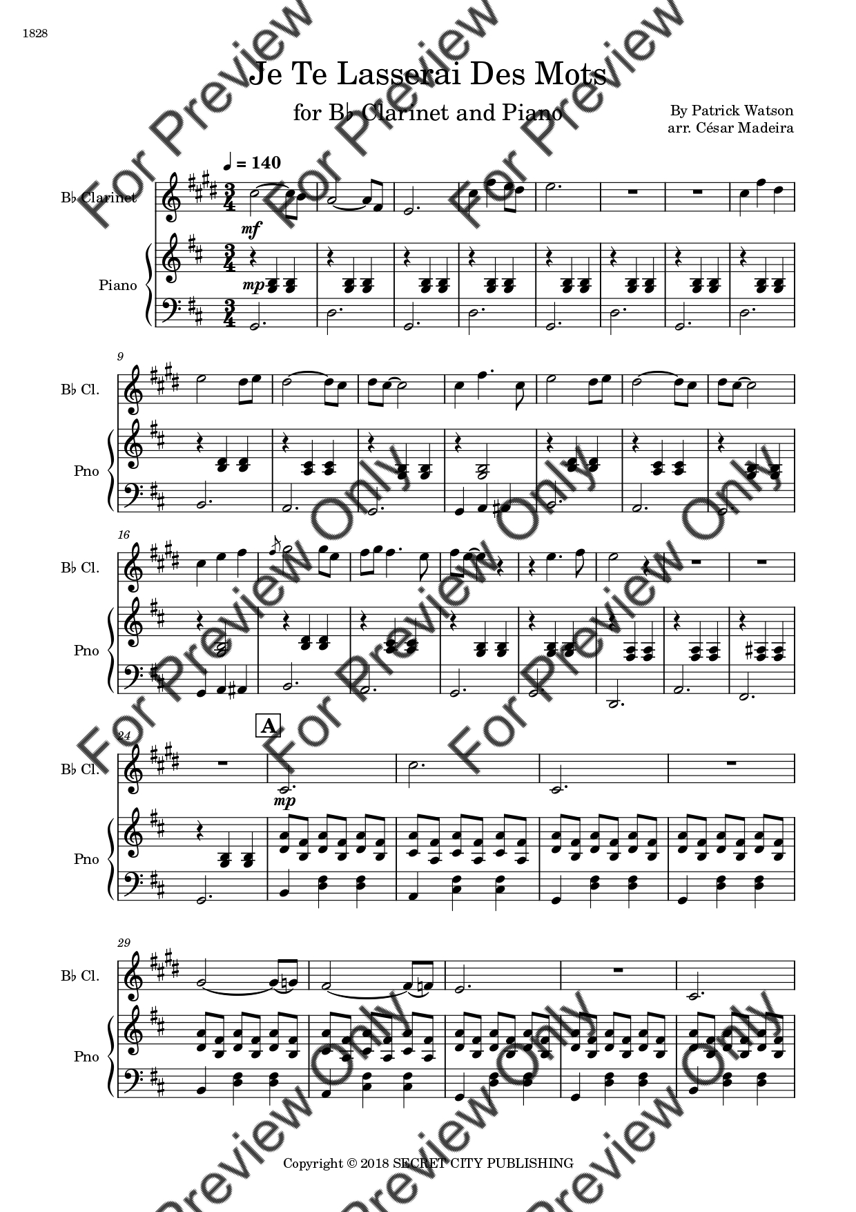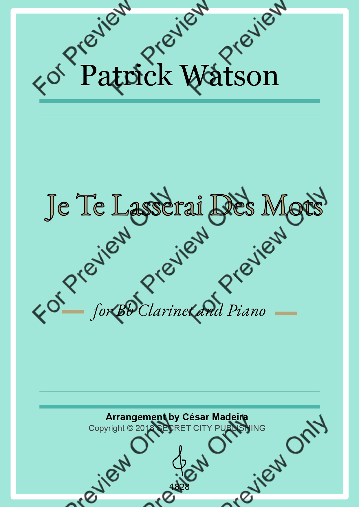 Je Te Laisserai Des Mots by Patrick Watson. Arrangement for Clarinet in Bb and Piano. With Full Score and Individual Parts. Have fun!