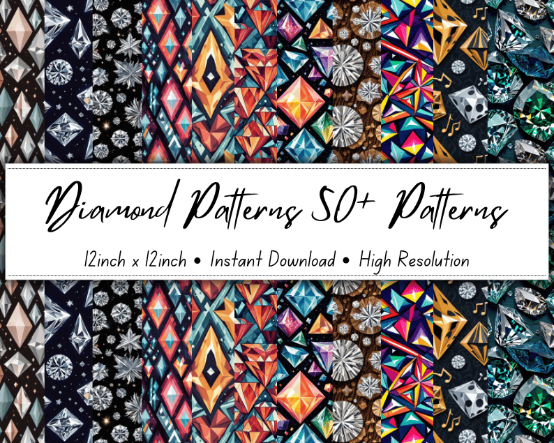 Diamond Patterns 50+ Patterns Collection | 12x12 Inches | High-Resolution Digital Printables | Instant Download