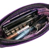 The Dinner Date Bag can be made from fabric, vinyl, cork or leather. Exterior pattern pieces need to be stabilized to achieve the desired structure. Lining fabric can be made from any light weight non-stretch material. The pattern provides separate pattern pieces for exterior, stabilizer and lining.