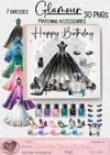 Evening dress, ball gown, prom, New Year. 7 dresses + accessories; shoes, eyes. Eye shadow, nail varnish and a large perfume bottle with room to personalise. clipart. 30 PNGs. Ideal for Birthday, wedding, party invitations etc. Sublimation or print. Please note, no text is supplied. Pictures are examples only.