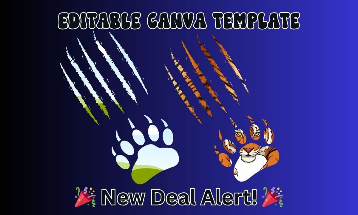 Unleash custom creativity! This Tiger Claw Canva Frame allows you to instantly insert any photo, pattern, or color with a simple drag-and-drop. Perfect for custom apparel and team spirit.