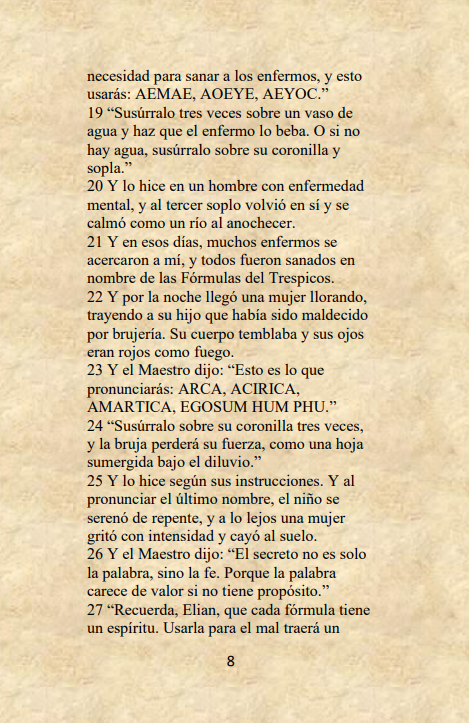 Es una novela esotérica escrita en forma de escritura sagrada, donde cada capítulo está compuesto de versículos que contienen oraciones, enseñanzas y simbolismos misteriosos. Entre la verdad y la fantasía, lo sagrado y lo profano, esta novela es una llave hacia la sabiduría sagrada de los antiguos seres.