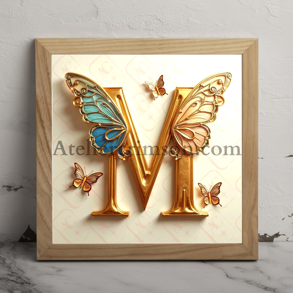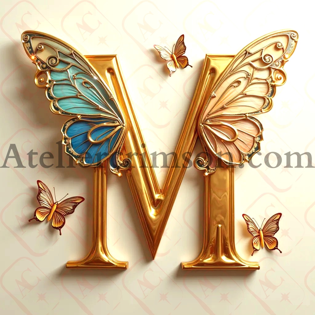 The letter M golden luxury butterfly .Download Now this high quality AI-generated image, perfect for adding a touch of luruxy and creativity to any space.
